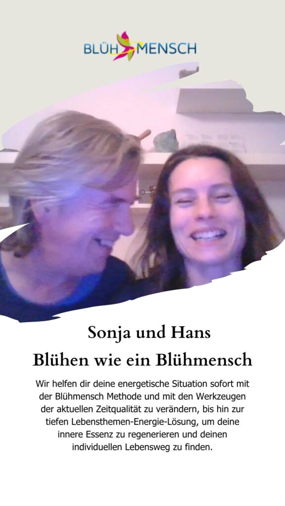 Wir sind Sonja und Hans von Blühmensch, Coaches für Hilfe zur Selbsthilfe und Spezialisten für neue Energiearbeit.
